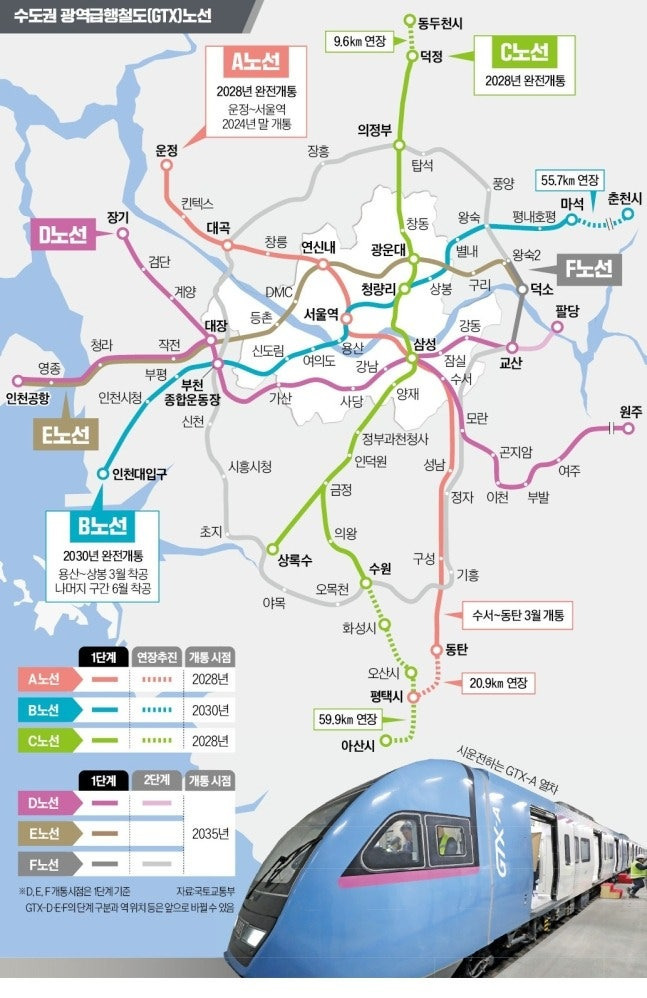 GTX-B노선은 인천 송도(인천대 입구)에서 신도림, 여의도, 서울역, 용산, 청량리 등을 거쳐 남양주 마석을 잇는 약 82.8㎞의 광역급행철도 노선이다. 인천대 입구~용산, 상봉~마석 구간은 민간 업체가 사업을 맡는다. 공사비 4조2894억원이 투입된다. 용산~상봉은 세금으로 짓는 재정 구간이다. 2조7774억원의 공사비가 책정됐다.