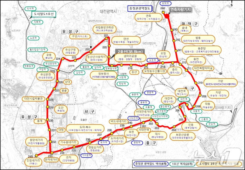 대전 도시철도 2호선 노선도 / 출처 = 대전시